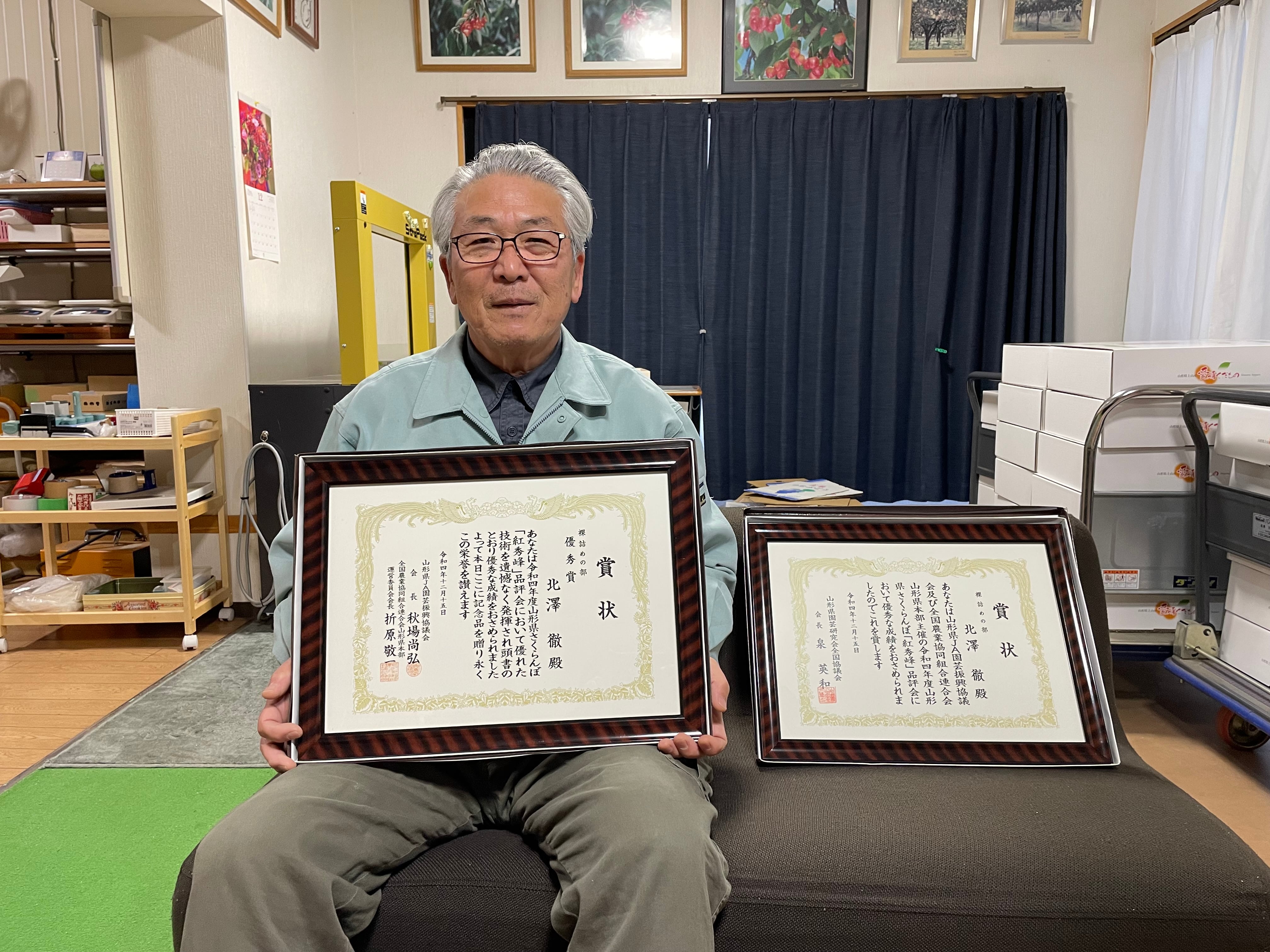 令和4年度の山形県さくらんぼ品評会『紅秀峰』裸詰めの部にて、優秀賞を受賞しました!